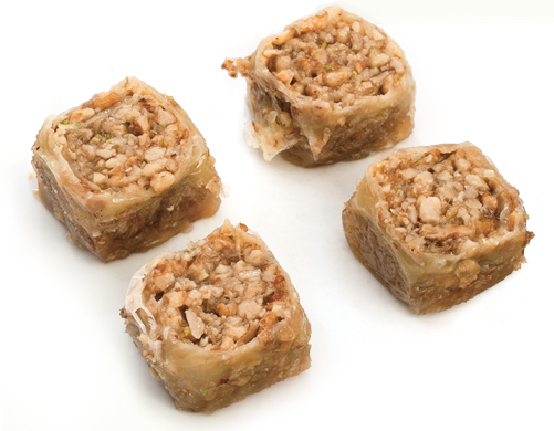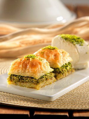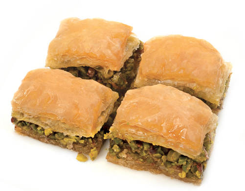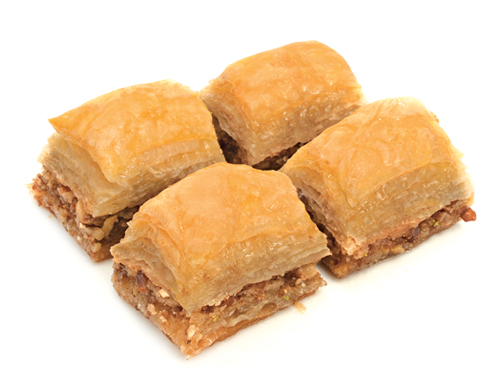 Turkish baklava is an Ottoman invention. It consists of a tight stack of paper-thin filo dough, layered with chopped nuts and bound with honey or syrup. The earliest English reference to it comes from 1650, but the word may have Mongolian origins (bayla means “to pile up,” as in layers of filo). The creation of the dish is unknown, with some scholars suggesting it is a natural extension of the ancient central Asian Turkic tradition of baking layered breads, while others point to the distressingly-named ancient Roman placenta cake (which was much tastier and less alarming than it sounds, featuring layers of dough alternating with cheese, honey and ground bay leaves). The origin story is perhaps of less importance than what the dish became. Baklava as we know it today featured in a Renaissance ceremony held at the Topkapi Palace in Istanbul. On the 15th of every month during Ramadan, the sultan would present baklava to his Janissaries, the elite troops of the Ottoman army, in a ritual called Baklava Alayi.