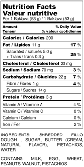 Kadayif is the general name of the dessert as a whole, but more specifically, the batter. The result of the batter being poured onto a round hot plate appears similar to pancakes, except only one side is cooked, then folded. The pastry is filled with either unsalted cheese or a mixture of any of hazelnuts, walnuts, almonds, pistachios, raisins, powdered sugar, vanilla extract, and cinnamon. It is then deep-fried or, less commonly, baked and served with a hot syrup or sometimes honey.