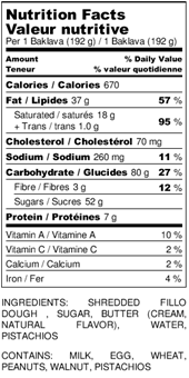 Kadayif is the general name of the dessert as a whole, but more specifically, the batter. The result of the batter being poured onto a round hot plate appears similar to pancakes, except only one side is cooked, then folded. The pastry is filled with either unsalted cheese or a mixture of any of hazelnuts, walnuts, almonds, pistachios, raisins, powdered sugar, vanilla extract, and cinnamon. It is then deep-fried or, less commonly, baked and served with a hot syrup or sometimes honey.