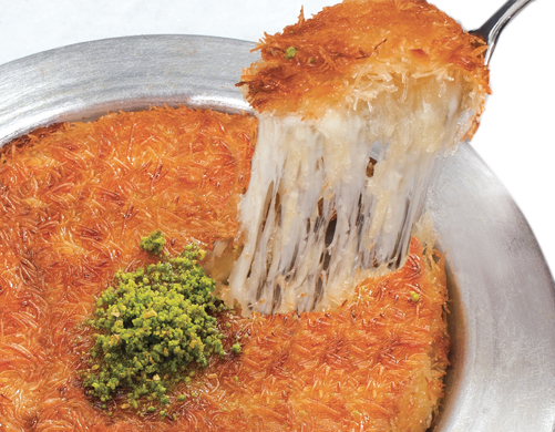• It is a soft but crispy dessert sprinkled with ground pistachios and usually served with ice cream which creates a perfect unforgettable combination of hot and cold.
